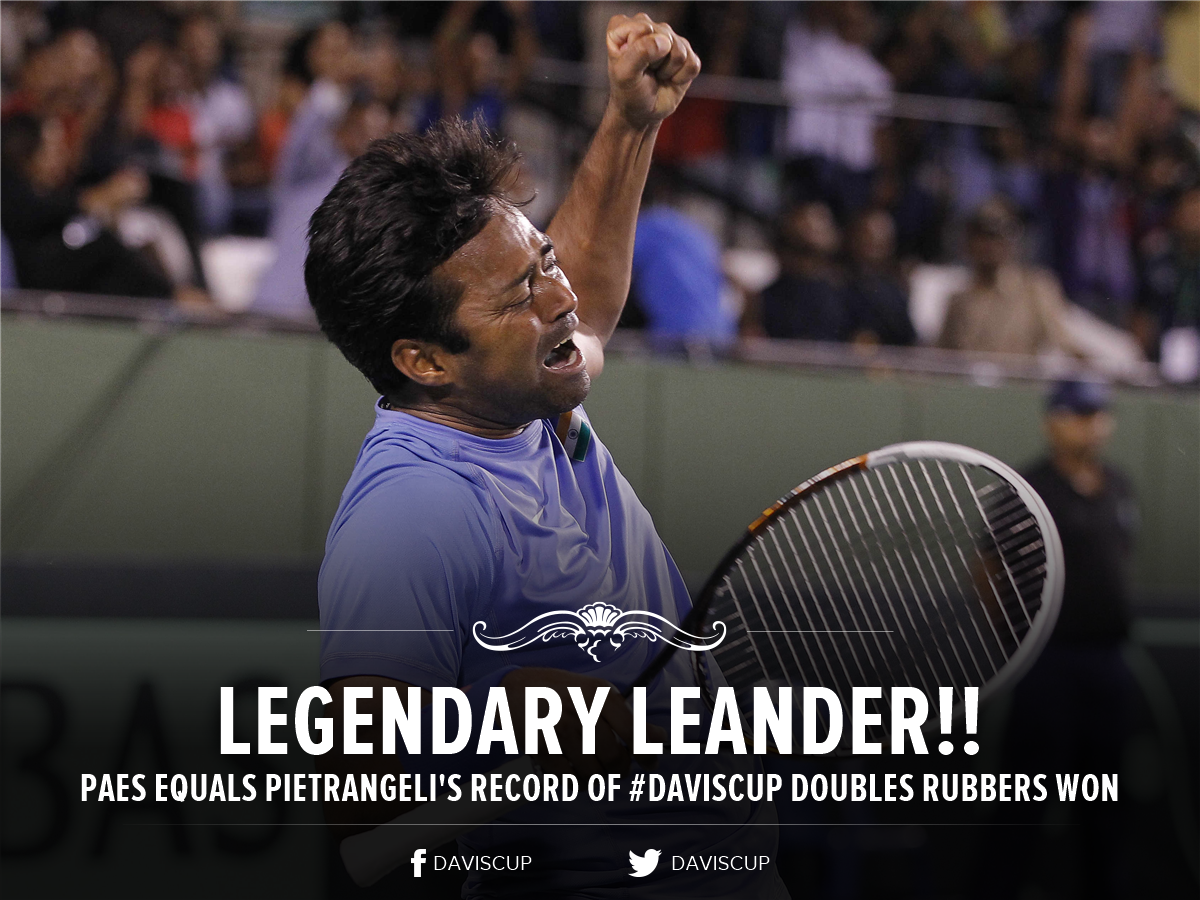 Also a 42nd Davis Cup doubles win for Leander, which equals Nicola Pietrangeli's record for most Davis Cup doubles victories.